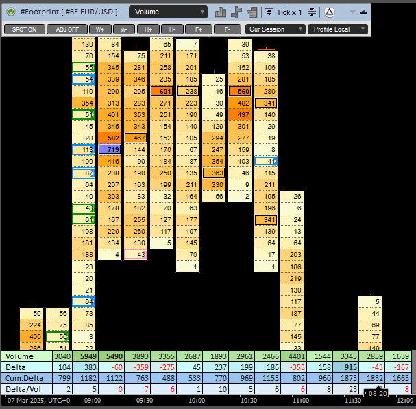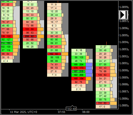 Footprint is a type of the chart where you can see sum of the traded volumes at a specified price for a certain period. Commonly the Footprint term is used with the term Order Flow.