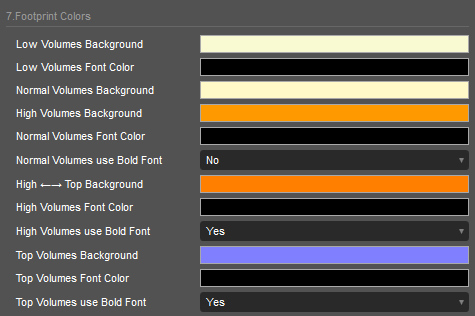 Top Volumes Background is the background color for the Top values that are higher than Top level.