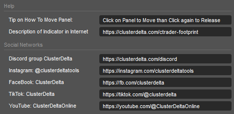 Footprint for cTrader is based on cTrader objects, so at high resolution and small scale it requires a large number of objects that cTrader must process, and generally does not do so very quickly. First recommendation is to remove Grid Lines and than Border Lines / Custom Candle to check the performance and than add them depends on your needs. This windows may be called by i key or with indicators icon on the footprint toolbar on the indicator panel.
