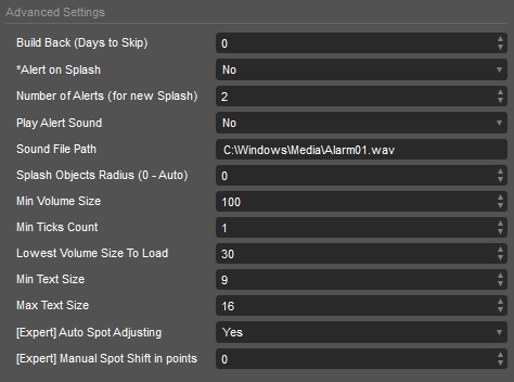 [Expert] Auto Spot Adjusting is an option that allows you to adjust indicator data to the spot chart using the latest highs and lows of the current trading session. The difference that is automatically calculated using this option may vary from trading session to trading session, so this may result in incorrect alignment of indicator data for different trading sessions.