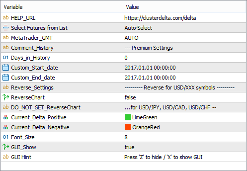 • Current_Delta_Positive - the color of the text of current positive delta on the last (current) bar.