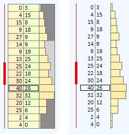 Each cell contains one of the available backgrounds (which have the "No Background" option . The background can fill the cell with its own color depending on its type, or it can be used as a profile whose length is a part of the cell in the same ratio as the value (corresponding to the type of background) relative to the maximum value for that type. Profiles can be directed from Left to Right or from Right to Left, where the first word defines the starting side of the cell.