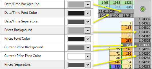 Prices Font Color is the font color of the prices on the Price panel