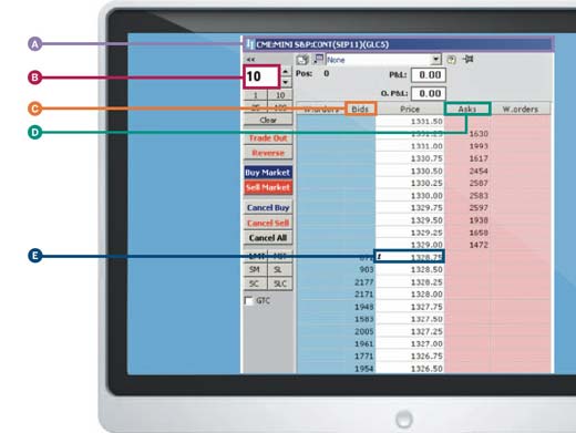 Джек готов к торговле, он будет торговать, используя онлайновый торговый терминал (также называемый front-end). Торговый терминал соединяется непосредственно с CME через брокерскую фирму. Программное обеспечение Джека дает возможность исполнять ордера, позволяет Джеку видеть 10 ближайших, от последней цены, лимитных ордера спроса и предложения, а также другую торговую информацию в режиме реального времени. Система CME Globex предоставляет всем рыночным участникам, крупным и мелким, одни и те же цены и торговую информацию. Это дает Джеку уверенность, что он конкурирует на едином игровом поле.