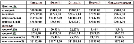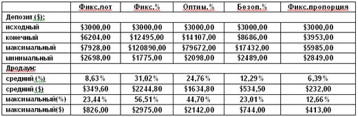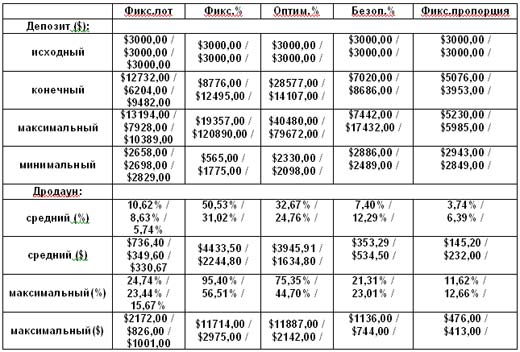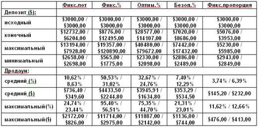 Таким образом, имея достаточный обьём сделок ( желательно не менее 200) можно для своей торговой стратегии подобрать оптимальный вариант применения тактики ММ, при которой можно будет согласовать уровень риска и скорость прироста капитала.