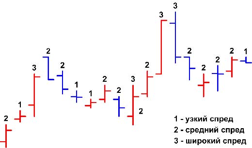 Спред - расстояние между хаем и лоу бара