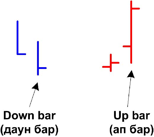 Бары классифицируют на down bar и up bar, немного не похоже на классическое понимание.
