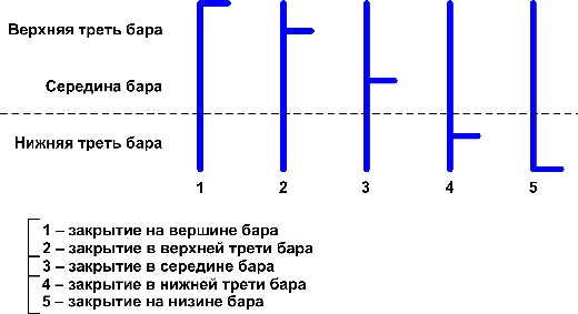 В каждом баре проводится анализ цены закрытия относительно диапазона бара. То есть бар делится условно на три части. В ВСА важно в какой из трети бара было его закрытие: