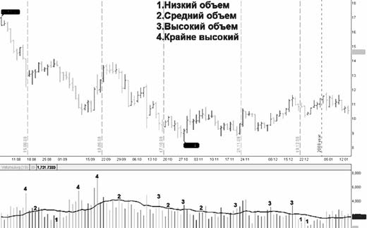 - высокий либо очень высокий объем (чем выше, тем сильнее признак)