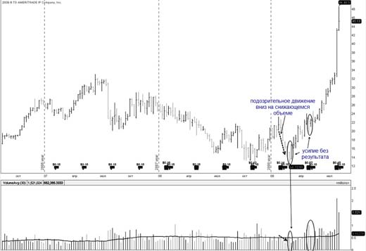 Если же появляется предложение, толпа продолжает продавать, то цену гонят дальше до тех пор, пока не вытрясут максимально - неудачный тест.