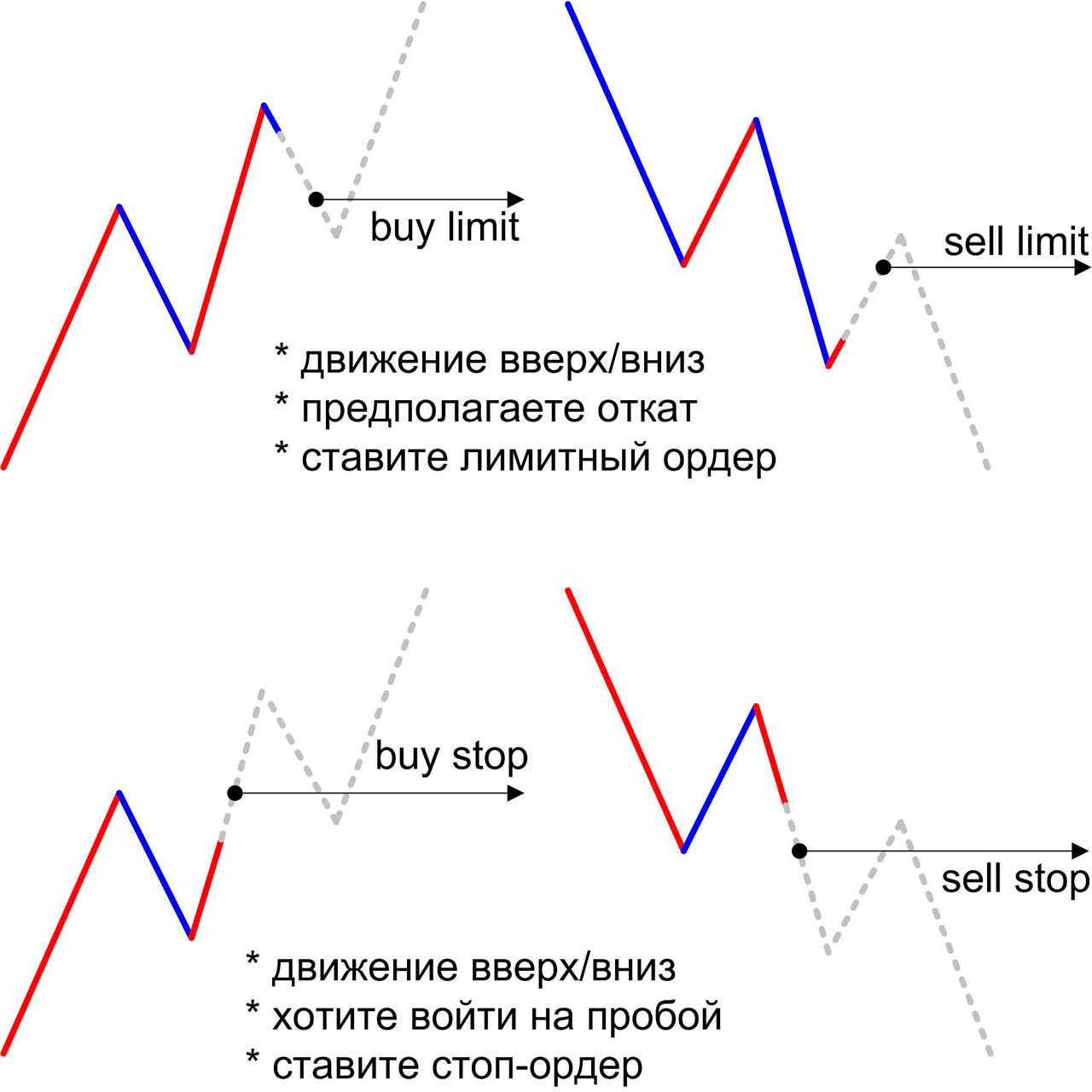 - для входа в позицию, используется как правило в пробойных торговых стратегиях, то есть когда цена идет в нужную сторону, а возможности войти раньше не было.