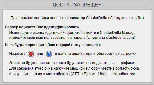 Если у Вас по какой-то причине не будет доступа или(!) будет доступ Standard - при работе с индикаторами Premium Вы получите следующую ошибку: