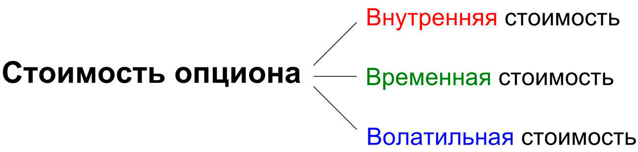 Цена которую вы уплачиваете за опцион, то есть за право приобретения актива - стоимость опциона - составная величина, в которую входит