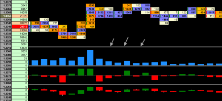 - Индикатор дельты - гистограмма со значением суммарной дельты в кластере